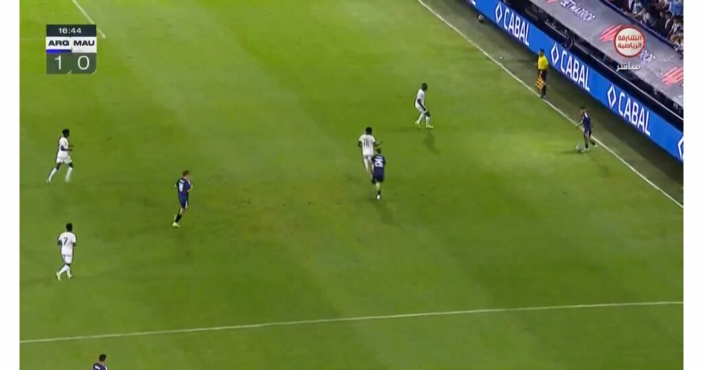 سجل الهدف الأول للارجنتين لاعب تشيلسي إنزو فيرنانديز في الدقيقة 17 بفعل خطأ وارتباك في دفاع المنتخب الموريتاني بينما سجل الهدف الثاني اللاعب نيكو باز في الدقيقة 37 من ضربة حرة مباشرة.