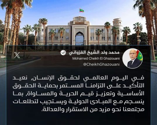 أعلن الرئيس محمد ولد الشيخ الغزواني، التزامه بحماية الحقوق الأساسية وتعزيز قيم الحرية والمساواة.