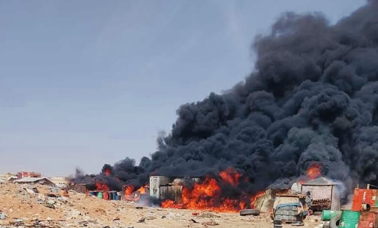 الزويرات: حريق ضخم يلتهم مستودعا للمحروقات