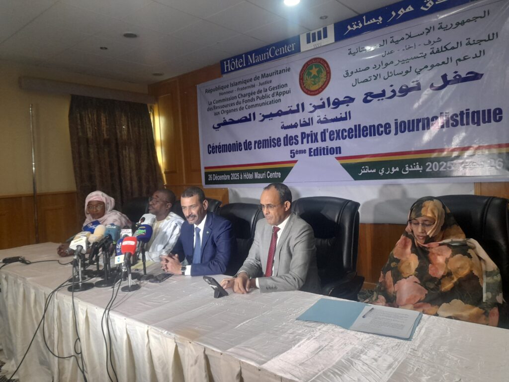 نظمت لجنة تسيير وتوزيع موارد صندوق الدعم العمومي لوسائل الاتصال، صباح اليوم الجمعة بفندق موري سانتر في نواكشوط، حفل توزيع جوائز النسخة الخامسة من التميز الصحفي التي ينظمها الصندوق منذ خمس سنوات