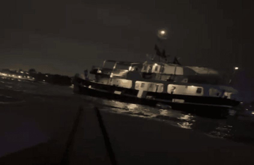 وأظهر مقطع فيديو تصاعد ألسنة اللهب من السفينة الإسبانية التابعة لأسطول الصمود العالمي وهي قرب الميناء، وتدخل خفر السواحل.