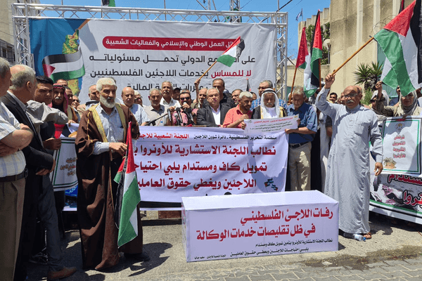 ورفع المشاركون لافتات تؤكد رفضهم القاطع لكل الإجراءات والتقليصات التي تستهدف وكالة أونروا، معتبرين أنها تمثل حلقة خطيرة في مسلسل تصفيتها سياسياً وإنسانياً، وضرب جوهر دورها شاهداً دولياً حياً على النكبة الفلسطينية وتهجير الشعب الفلسطيني قسراً من أرضه وقراه ومدنه المحتلة عام 1948.