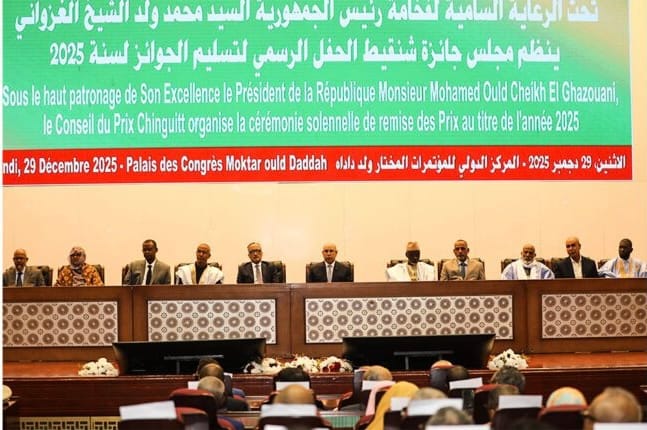أشرف الرئيس محمد ولد الشيخ الغزواني، على حفل توزيع جوائز شنقيط لسنة 2025، الذي نُظم تكريمًا للنخبة المتميزة من الباحثين والمبدعين في مجالات العلم والمعرفة.