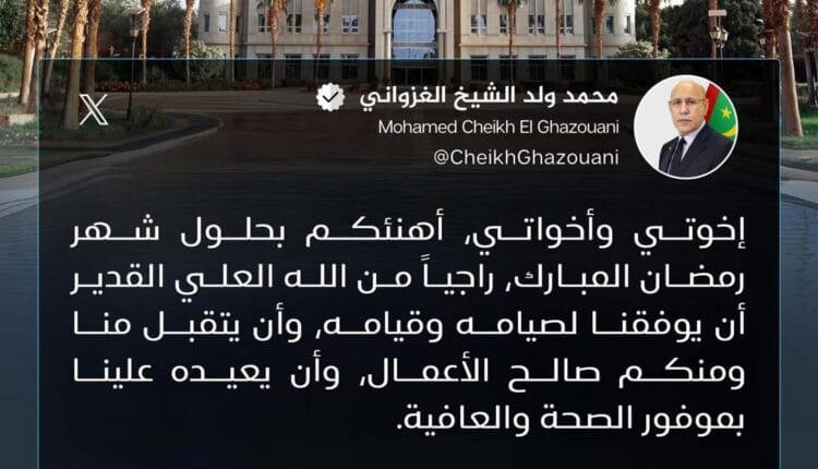 قدم الرئيس محمد ولد الشيخ الغزواني، التهاني للشعب الموريتاني بمناسبة حلول شهر رمضان المبارك.
