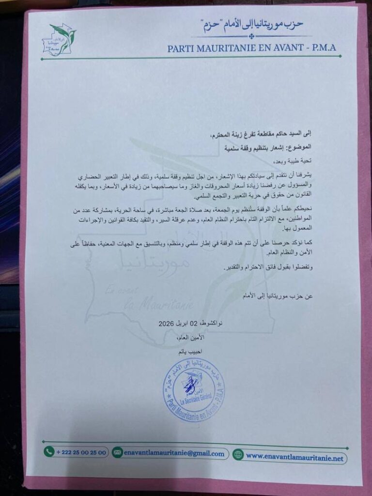 وقال حزب “موريتانيا إلى الأمام” أن حاكم مقاطعة تفرغ زينة رفض منح الترخيص دون تقديم مبررات كافية، مكتفيًا بالقول إنه لن يتم الترخيص لأي وقفة احتجاجية في الوقت الحالي.