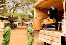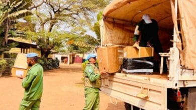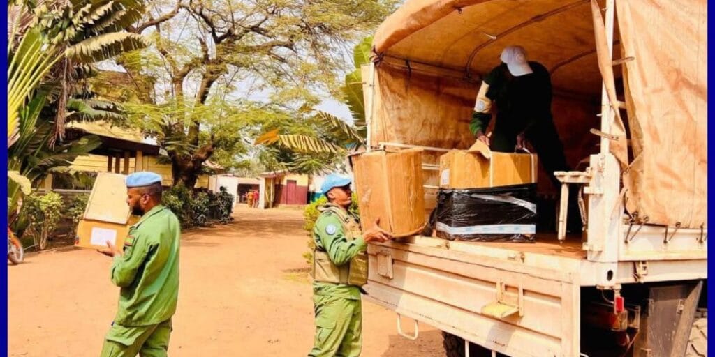 وحدة الدرك الوطني ضمن بعثة الأمم المتحدة في إفريقيا الوسطى تقدم تبرعًا من الأدوية لمركز الصحة الحضرية “كاستور”