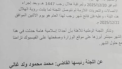 لجنة الأهلة تعلن الإثنين فاتح شهر رجب 1447هـ